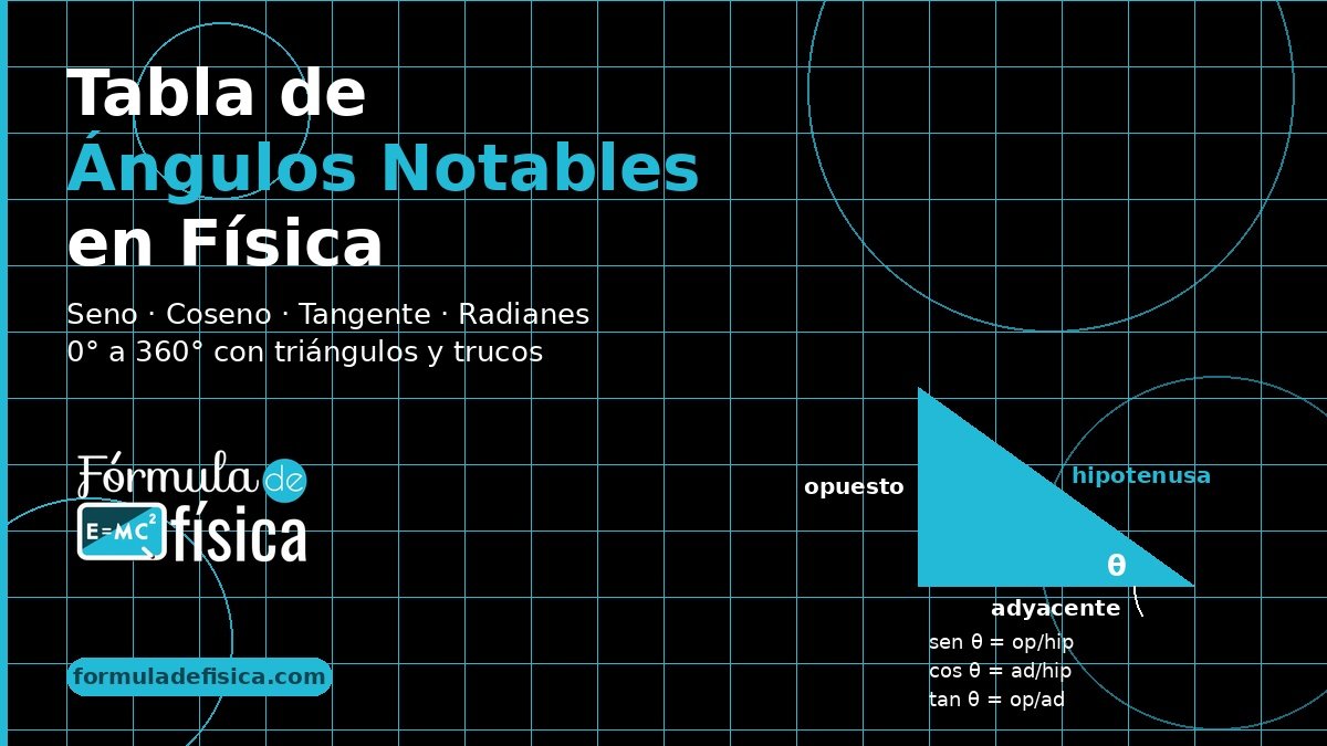 Los ángulos notables en física y matemáticas son aquellos cuyas funciones trigonométricas — seno, coseno y tangente — dan valores exactos o aproximaciones simples de recordar. Los más importantes son 0°, 30°, 37°, 45°, 53°, 60° y 90°.